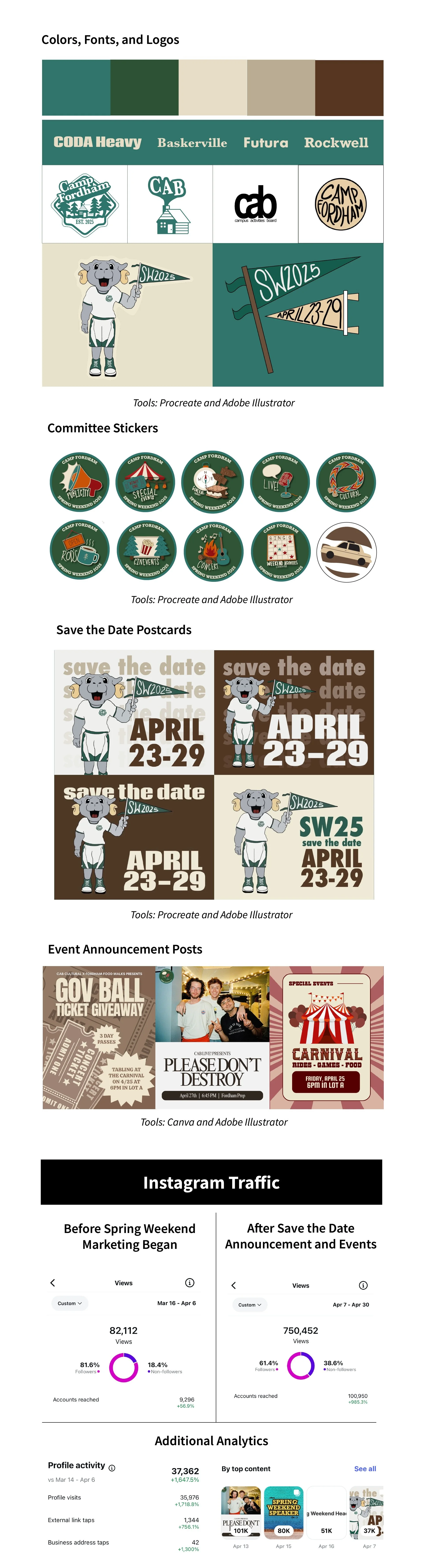 Spring Weekend is Fordham Campus Activities Board’s biggest week-long event. It consists of two concerts, comedians, speakers, a carnival and more! I have been lucky enough to be on the Publicity Committee for three years. But, in 2025, I transitioned into the lead role and decided on the marketing direction. Below are my contributions to the week.
